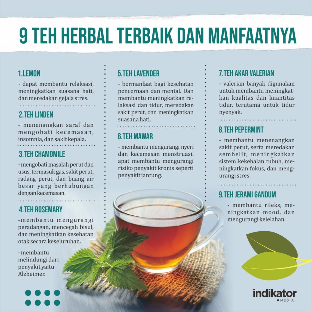 SURABAYA (Indikator) – Selama ribuan tahun, orang telah menggunakan teh herbal untuk meningkatkan kesehatan atau sekadar menikmatinya. Teh herbal juga dikenal dapat membantu mengurangi stres, kecemasan, dan bahkan membantu tidur lebih nyenyak.