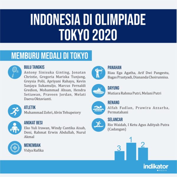 SURABAYA (Indikator) – Sebanyak 28 atlet kawakan dikirim pemerintah Indonesia ke ajang Olimpiade Tokyo 2020. Mereka adalah atlet terbaik di cabang olahraga masing-masing. Karena itu, Ketua Umum Komite Olimpiade Indonesia (KOI) Raja Sapta Oktohari pun optimis, 28 atlet yang akan berlaga di 8 cabang olah raga ini mampu meningkatkan peringkat Indonesia dari posisi ke-46 di Olimpiade 2016 Rio menjadi posisi ke-40.